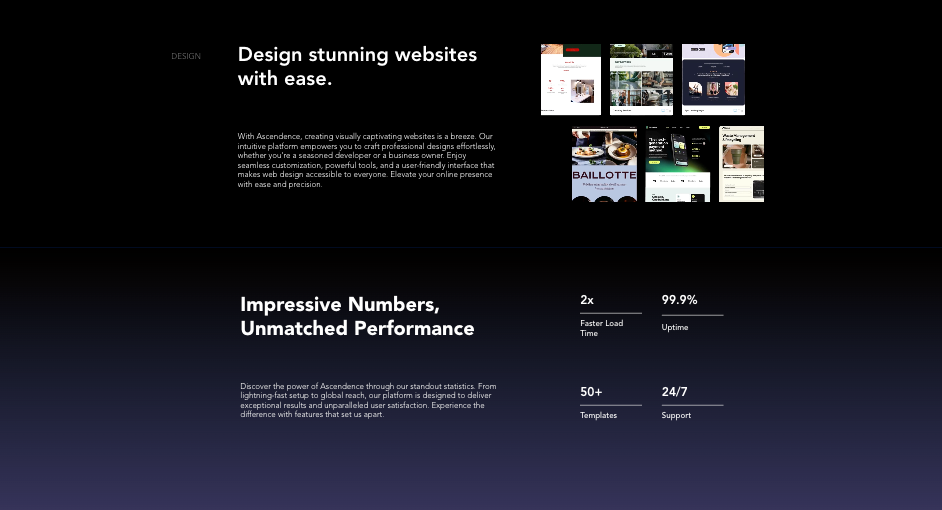 Ascendence ist eine innovative Webbuilder-Plattform aus den USA, die es Startups und kleinen Unternehmen ermöglicht, schnell und effizient moderne Webseiten zu erstellen. Ziel war es, die Plattform online ansprechend zu präsentieren, Vertrauen bei Investoren und Nutzern aufzubauen und die Kernfunktionen klar zu kommunizieren.