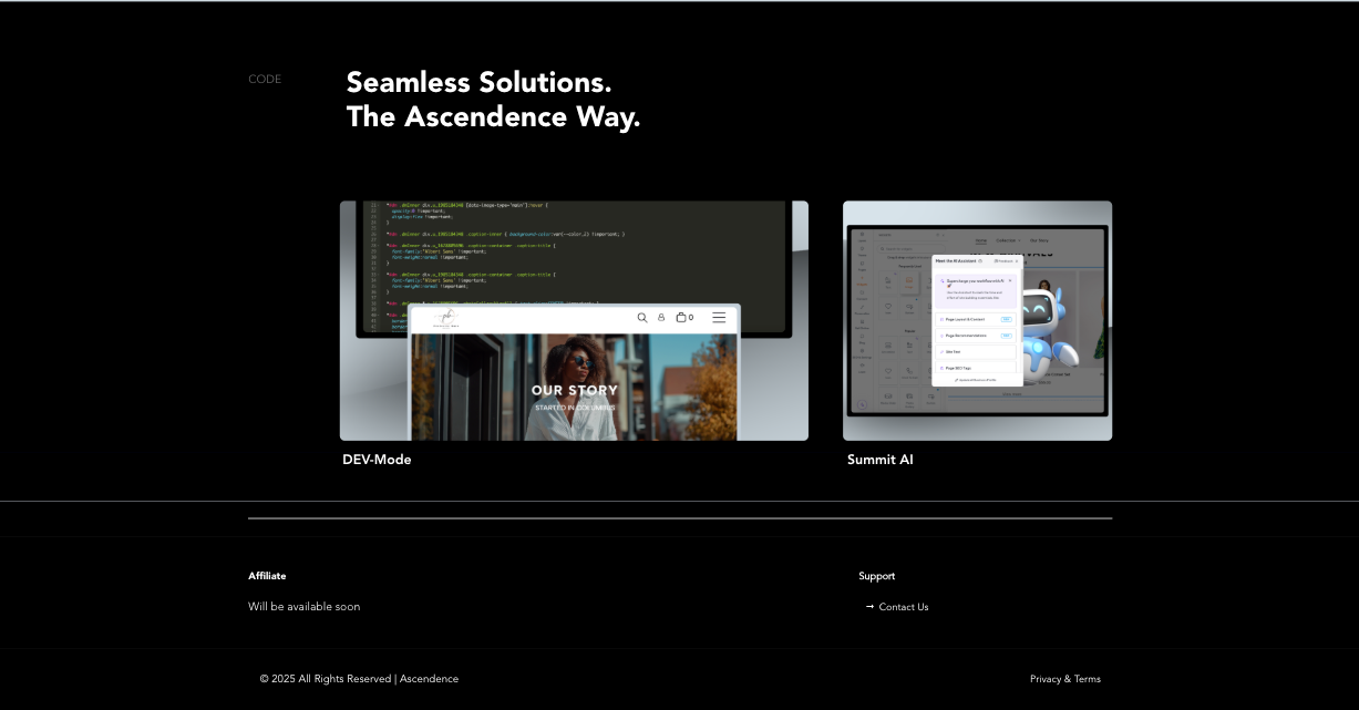 Das Ergebnis ist eine klar strukturierte, moderne Webseite, die die Kernfunktionen von Ascendence verständlich kommuniziert und die Marke als professionellen, modernen Webbuilder positioniert. Der Kunde zeigte sich äußerst zufrieden, und die Webseite erhielt positive Rückmeldungen sowohl von Investoren als auch von potenziellen Nutzern.